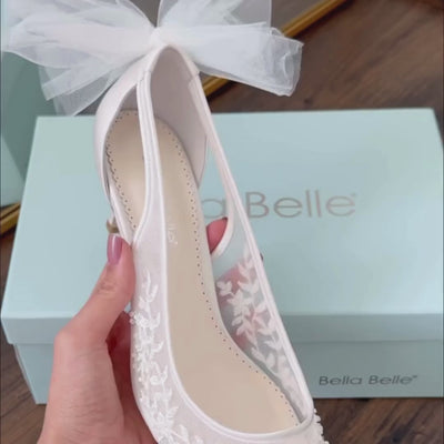 Thank you for helping me find my perfect wedding shoes! They were perfect! I needed a shorter block heel for an outdoor wedding on grass and was also concerned about comfort, and I wore these for most of the day without ever thinking about anything other than how gorg they were!\nIt was great to have a shoe that I felt secure in while walking down the aisle because managing a dress and train and cobblestones was a lot on its own.\nThere truly was no other brand that had shoes that had everything that I was looking for: extremely high quality, comfortable, a mid-height block heel, elevated design.\nI knew I was going to go with a Bella Belle shoe before I even got engaged!
