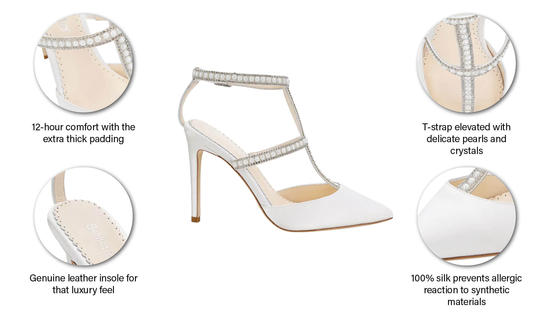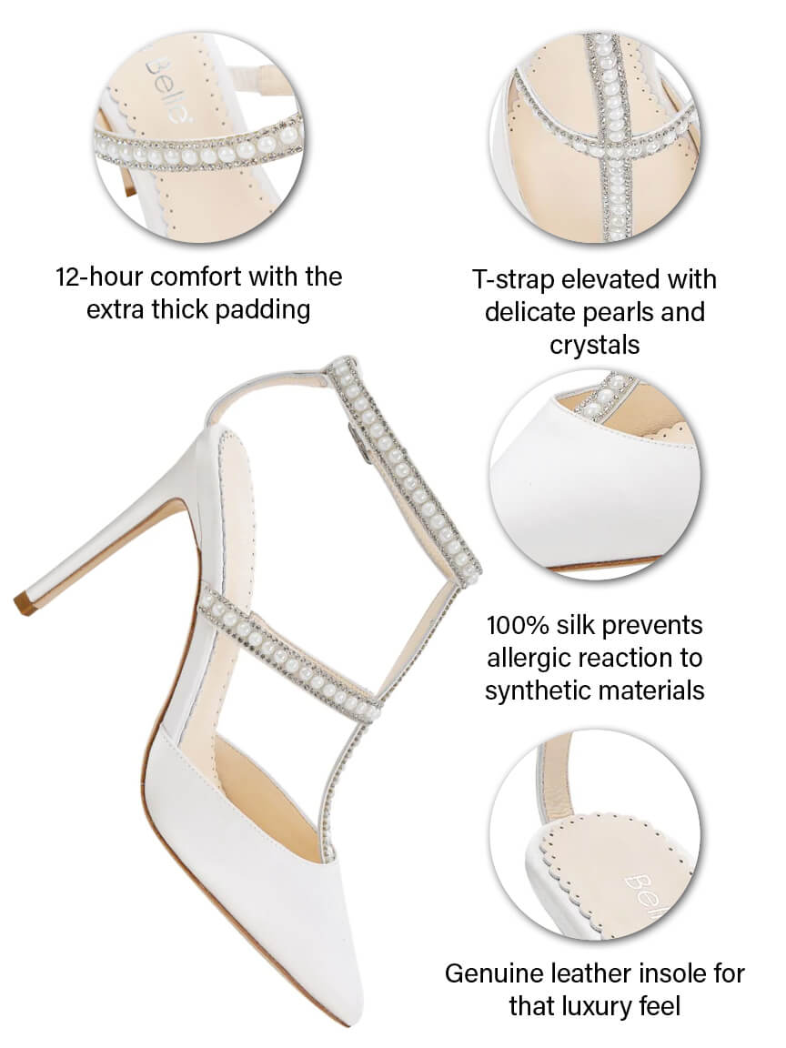 Bella Belle Shoes Carolina Silver Crystals and Ivory Luminous Pearl T-Strap Wedding Heel