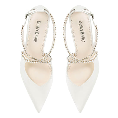 Bella Belle Shoes Massie Ivory Block Heel With Criss Cross Crystal Straps