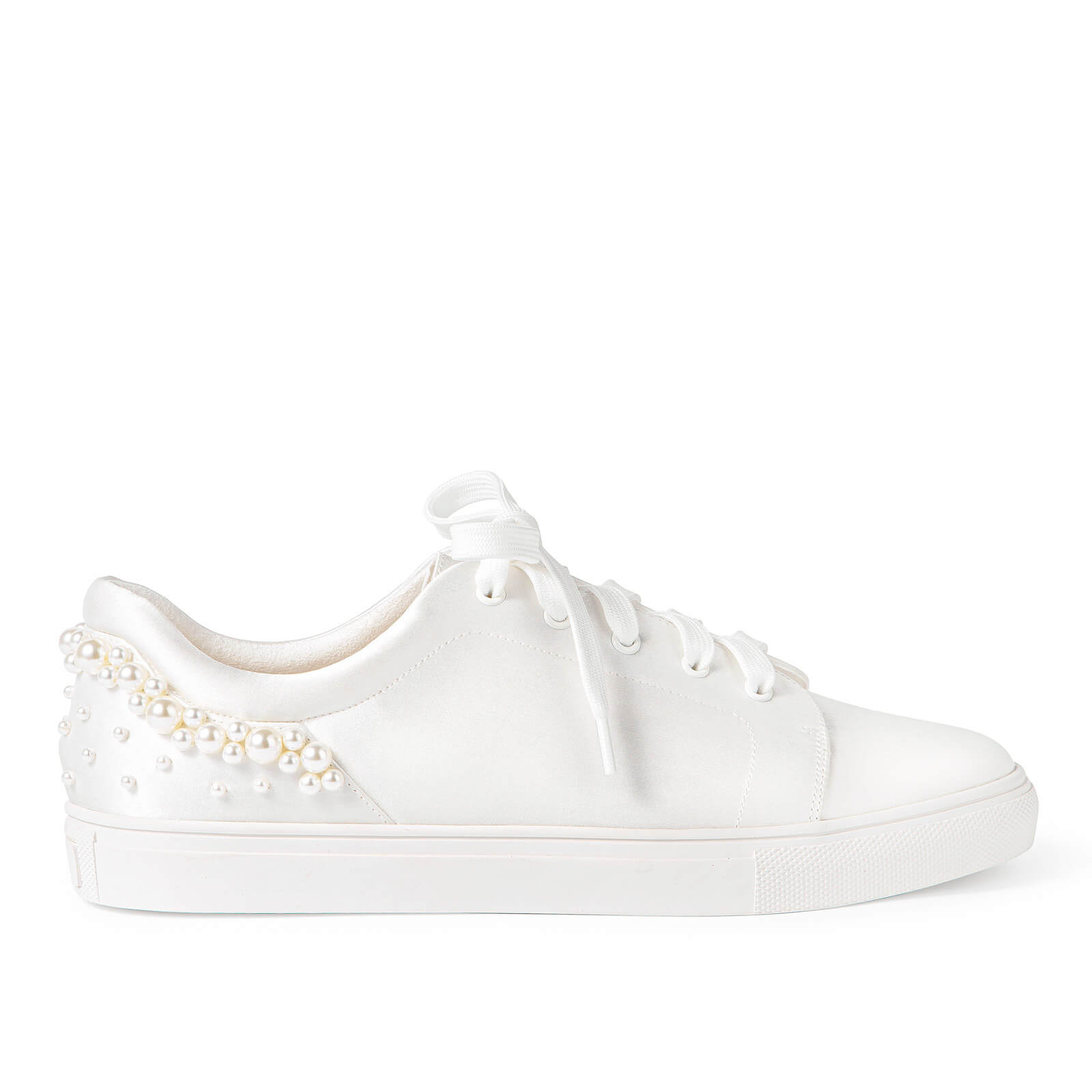 Tessa brings a chic twist to bridal sneakers with smooth silk, pearl embellishments, and a subtle 0.5-inch platform. Handcrafted with ultra-padded insoles, these wedding sneakers offer soft, all-day comfort and versatile style you’ll reach for long after the celebration.