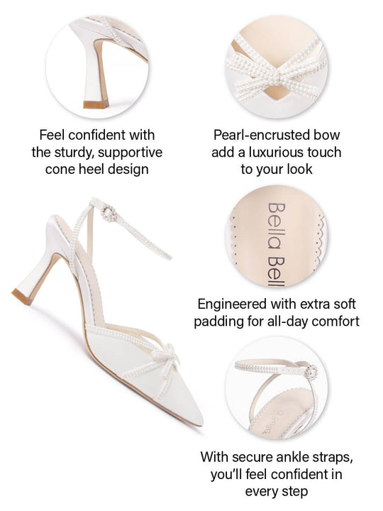 Bella Belle Alix Cone Heel Pump Pearl Bow Wedding Shoes
