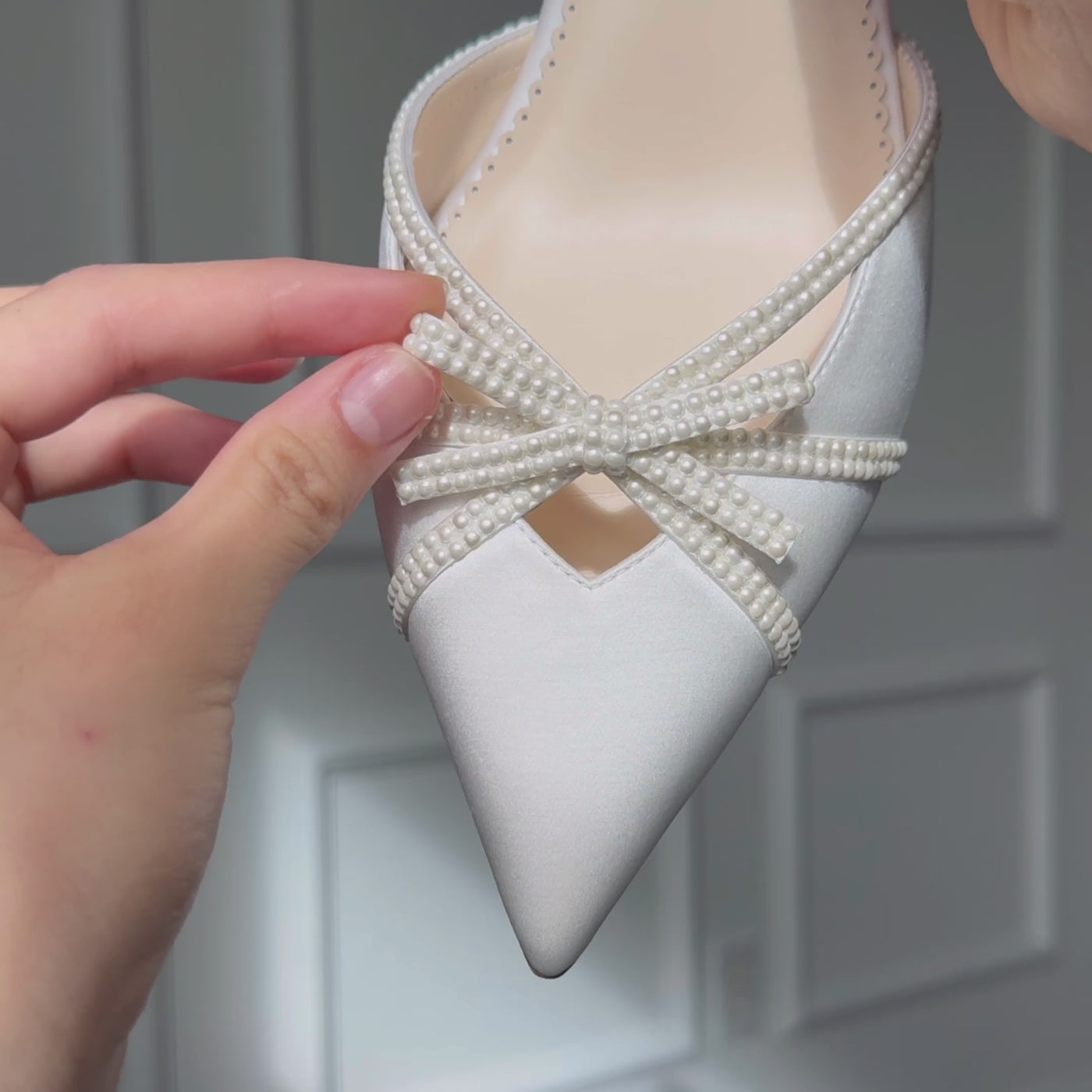 Cone Heel Pump Pearl Bow Wedding Shoes