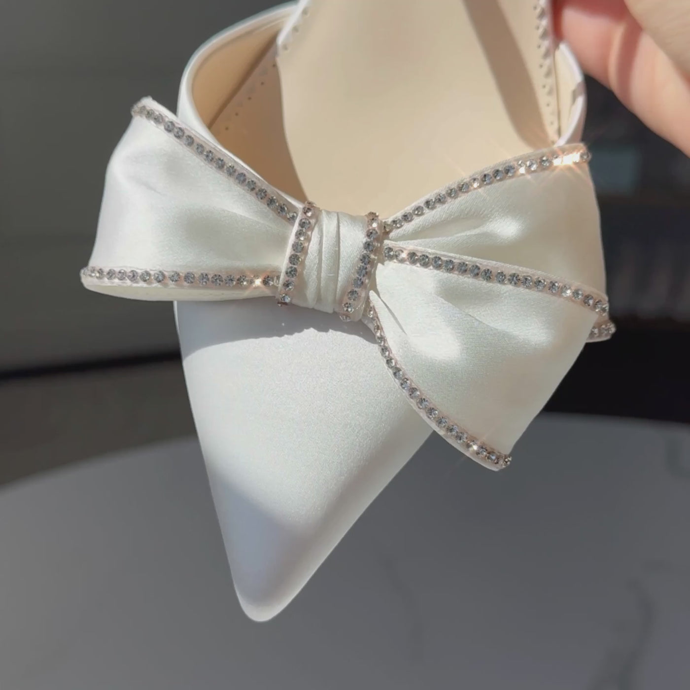 Crystal Edged Wedding Shoes with Bow and Block Heel