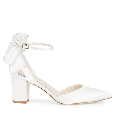 Bella Belle Molly Pearl Block Heels with Ankle Strap Bow