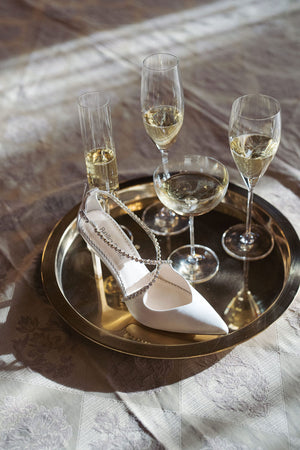 From walking down the aisle to strutting through life's grand soirees, these shoes are perfect for embracing the fabulousness of your Champagne Era. So go ahead, sip, sizzle, and celebrate because you are the toast of the town!