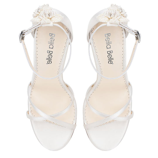 Bella Belle Shoes Gardenia 3D Floral Luminous Pearls and Ivory Beads Wedding Heel