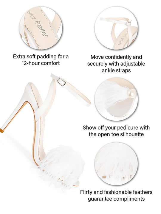 Bella Belle Quinn Double Ankle Strap Feather Bridal Shoes