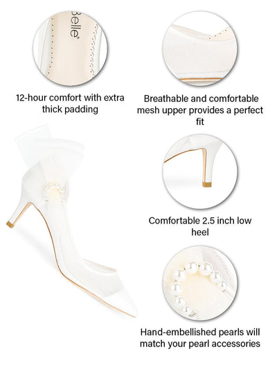 Bella Belle Rae Pearl Accent Ivory Kitten Heel Closed Toe Wedding Shoe